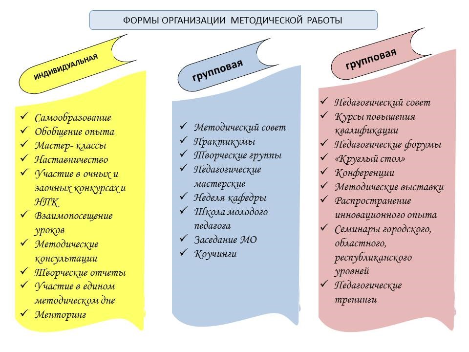 Реализация поставленных целей и задач достигается через работу педагогического, научно-методического, экспертных советов, методических объединений; осуществление курсовой подготовки, аттестацию педагогов, практическую деятельность, самообразование педагогов, рефлексию и саморефлексию, участие в форумах, семинарах, коучингах, профессиональных конкурсах, фестивалях; мониторинг качества и результативности.